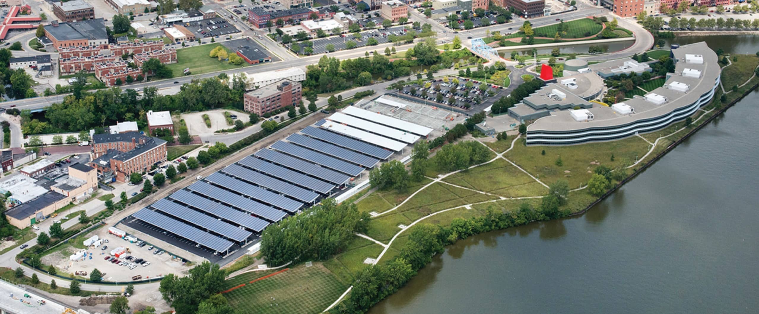 Notable work includes the 2.8 MW solar canopy at the Cincinnati Zoo and Botanical Gardens, the 2.4 MW canopy at Owens Corning’s headquarters, fixed tilt systems at Kent State University, a solar tracker installation at the University of Dayton, large scale canopies for Chase Bank locations in Columbus and Westerville, and the 1.3 MW canopy at the Robert J. Dole VA Medical Center in Wichita. This portfolio also contributed to earning a